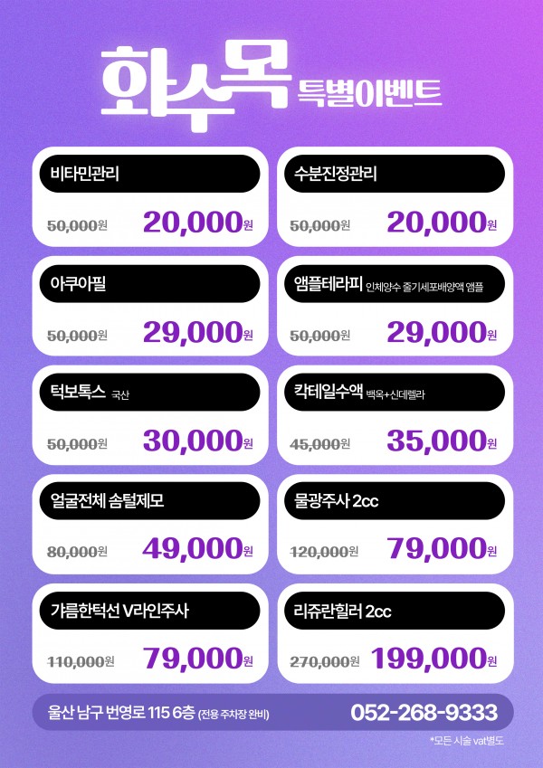 페이지 정보 작성자 뷰티민의원 댓글 0건 조회 16회 작성일 26-03-13 12:23 목록 본문 진행중 26년 화수목이벤트 ♥ 2026-01-01 ~ 2026-12-31 26년 화수목이벤트 ♥ 이벤트 신청하기 이벤트 신청하기 다음글뷰티민 3월이벤트♥ 26.02.27 댓글 0 댓글목록 등록된 댓글이 없습니다.