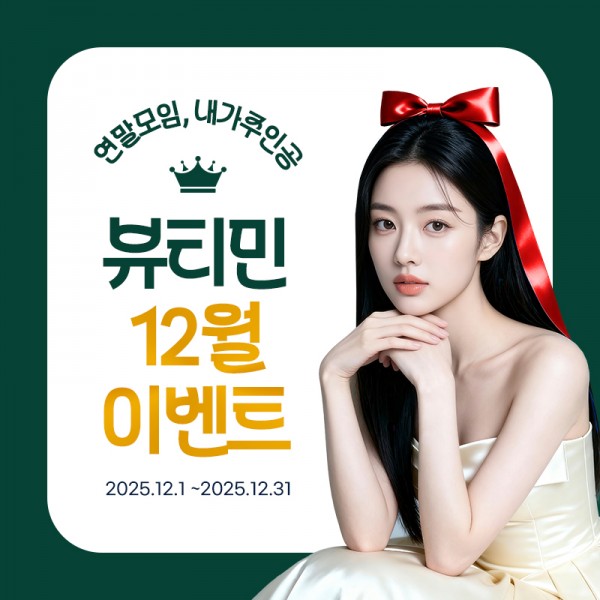 페이지 정보 작성자 뷰티민의원 댓글 0건 조회 669회 작성일 25-12-01 10:01 목록 본문 종료 "연말모임, 내가 주인공" 뷰티민 12월이벤트 ♥ 2025-12-01 ~ 2025-12-31 "연말모임, 내가 주인공" 뷰티민 12월이벤트 ♥ 이벤트 신청하기 이벤트 신청하기 이전글2026년 새해, 더예뻐질 기회! 1월 이벤트 ♥ 25.12.31 다음글포텐자 런칭이벤트 ♥ 25.11.14 댓글 0 댓글목록 등록된 댓글이 없습니다.